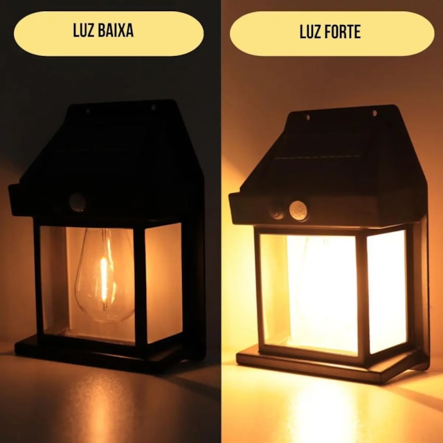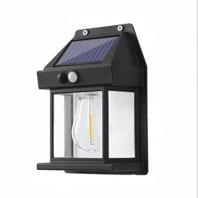 Arandela Solar de Parede com Sensor de Presença e Lâmpada de Filamento LED para Área Externa