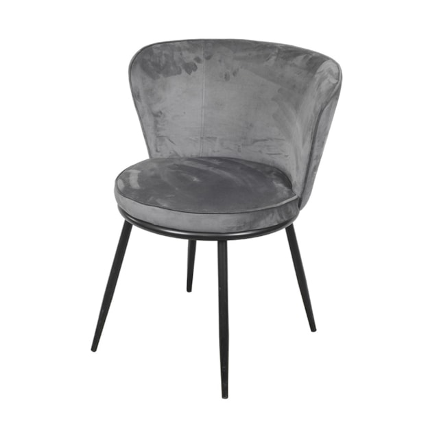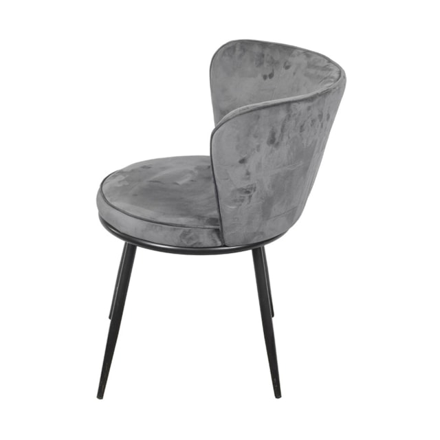CADEIRA NANDA ESPUMA REVESTIDA EM VELUDO CINZA E BASE EM AÇO PINTADO PRETA