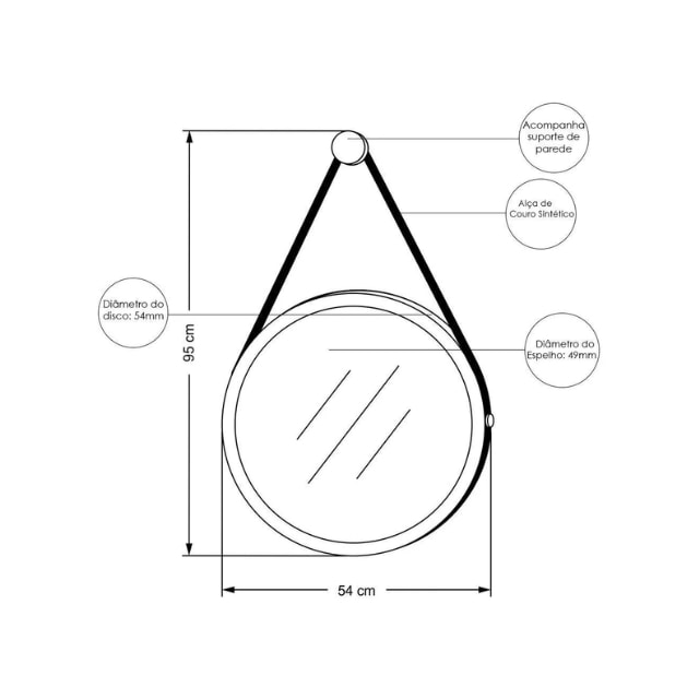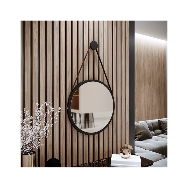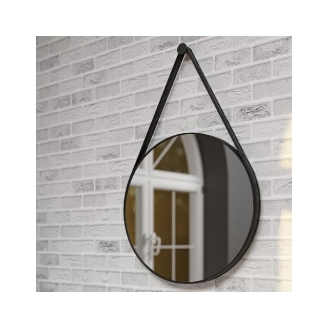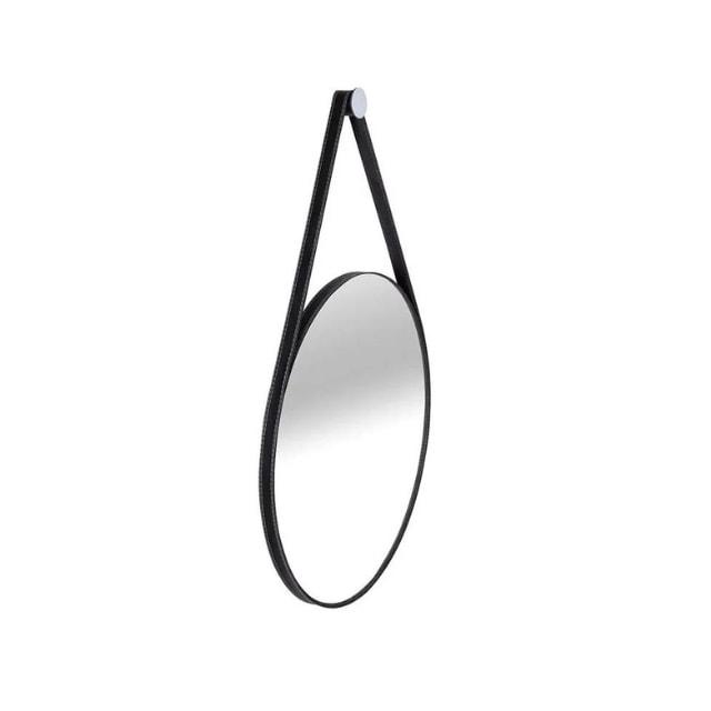 Espelho Redondo com Alça de Couro Preto Athos 40x61cm - Astra