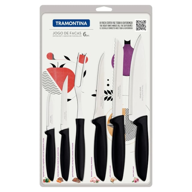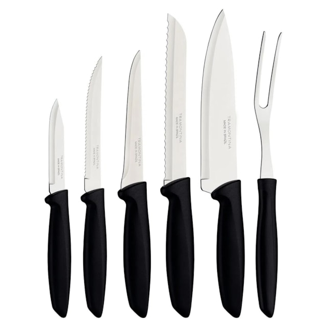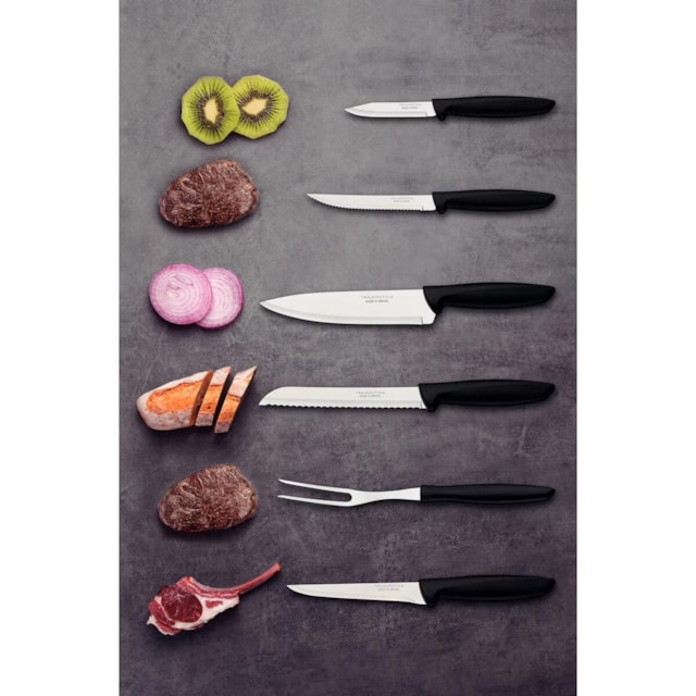 Jogo de Facas Tramontina Plenus com Lâminas em Aço Inox 6 Peças Preto