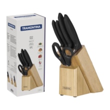 Oferta exclusiva no siteEXCLUSIVO NO SITEJogo de Facas Tramontina Plenus em Aço Inox e Suporte de Madeira 6 Peças