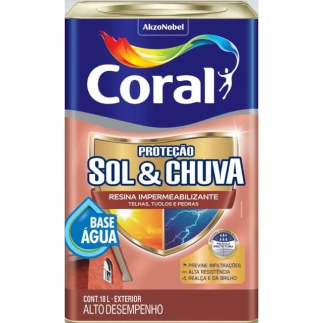 Oferta exclusiva no siteEXCLUSIVO NO SITEResina Impermeabilizante Incolor 18 Litros Sol e Chuva - CORAL