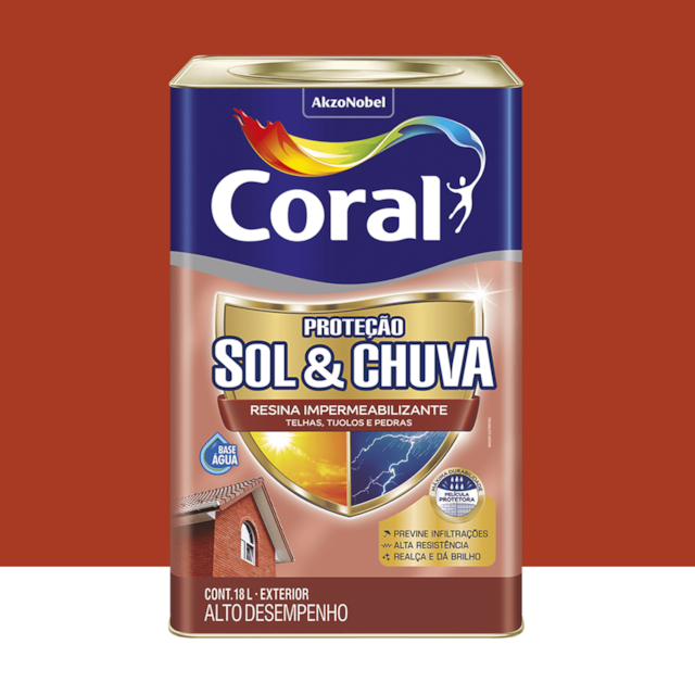 Resina Impermeabilizante Vermelho Óxi 18 Litros Sol e Chuva - CORAL