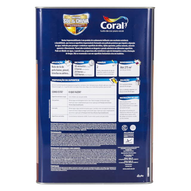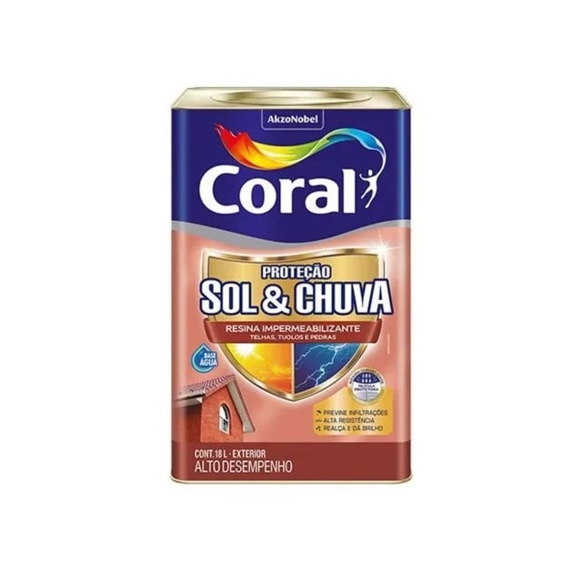Oferta exclusiva no siteEXCLUSIVO NO SITEResina Impermeabilizante Incolor 18 Litros Sol e Chuva - CORAL